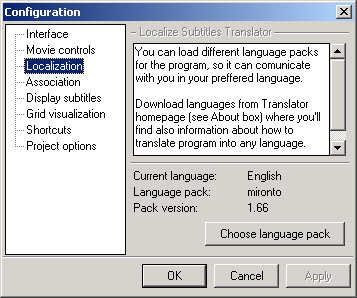 Warning ! Subtitles Translator is not a subtitles translator. So, if we have established this we can talk about Subtitles Translator (ST). You can’t find a magic button for translating the subtitle in your own language. You must do that with your brain. But you’ll find that ST can help you a lot. ST is a powerful tool for translating subtitles or building them from scratch. It uses the MicroDVD frame-based subtitles. Sorry, but you must have a MicroDVD subtitles for this program to work. Later we will elaborate the functions. System requirements go like this: if you can play a movie on your computer then you meet the requirements. So, for a DivX or XviD movie you need 64 MB of RAM, a minimum 600 MHz CPU. And, of course, the required codecs. For an MPEG1 movie, a 166 MHz CPU with MMX and 32 MB of RAM is enough. ST uses Windows © Media Player 2, ver 6.4. If you can’t play the movie with this program, you can’t see it in the movie window.