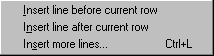 helping you inserting line before or after the current row, and also inserting multiple lines. Insert more lines take you to another menu: