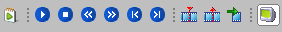Beginning from the left we have: Load Movie, Play/Pause Movie, Stop Movie, Rewind, Fast Forward, Move to the selected start Frame, Move to selected end frame (or movie if there are no start and end frame defined), Mark start position, to mark a start position for the movie, other than the first frame, Mark stop position for the movie, other than the last frame, Go to frame number, a small window displaying status of Movie window, a larger window displaying movie status (here movie is Stopped, When playing it plays at a speed of 1,00 x, length of movie is 7016 frames and we are at frame number 0.
