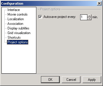 Autosave option give you the opportunity to enable/disable the auto save option. That means that, when specified here, the project is saved every 1 minute (in this case), helping you to not loose work you have done due to a mistake or a computer restart.