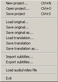 You can find them on the upper side, above the original subtitle window (grid). From left to right it goes like this : New project, Load project, Save project, Move to previous tag, Move to next tag, Load original file, Save original file, and Cut-Copy-Paste lines. The drop-down arrow next to the open icon help you by offering a quick access to the last opened projects. If, at some point you don’t have the project listed there or you want to delete the projects already finished, you can edit the translator.ini file (author's note: you don't have to delete the files from the list manualy, as ST checks for the files upon start and if the project file does not exist anymore, it gets erased automaticaly). There, at the end of the file, under the tag “[RECENT}” you can find the path to the projects. Delete the one you don’t need anymore.