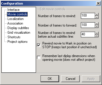 you can modify the number of frames to be rewind or forwarded and the number of frames to rewind when you press the “rewind before actual line” button.