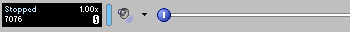 Beginning from the left we have: Load Movie, Play/Pause Movie, Stop Movie, Rewind, Fast Forward, Move to the selected start Frame, Move to selected end frame (or movie if there are no start and end frame defined), Mark start position, to mark a start position for the movie, other than the first frame, Mark stop position for the movie, other than the last frame, Go to frame number, a small window displaying status of Movie window, a larger window displaying movie status (here movie is Stopped, When playing it plays at a speed of 1,00 x, length of movie is 7016 frames and we are at frame number 0.
